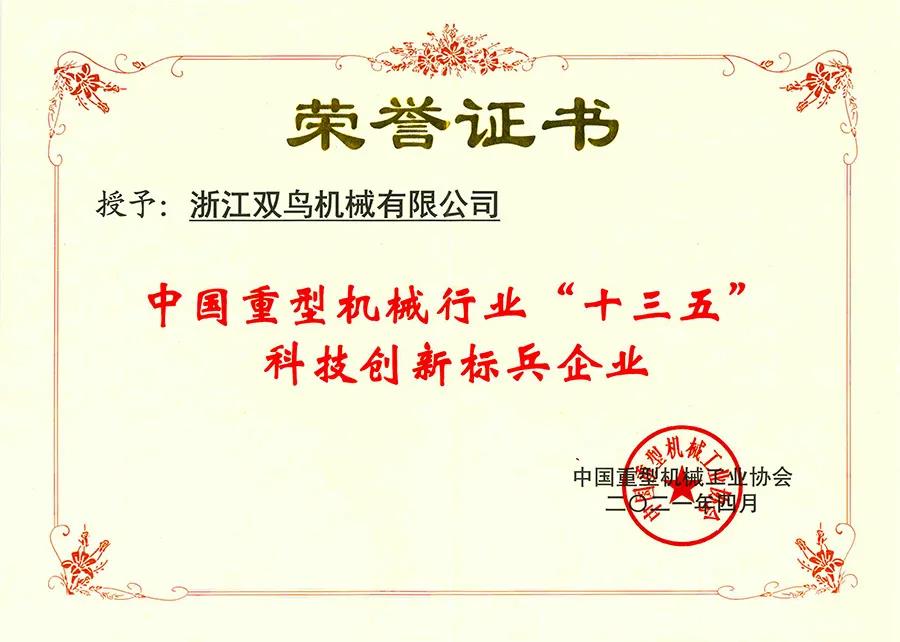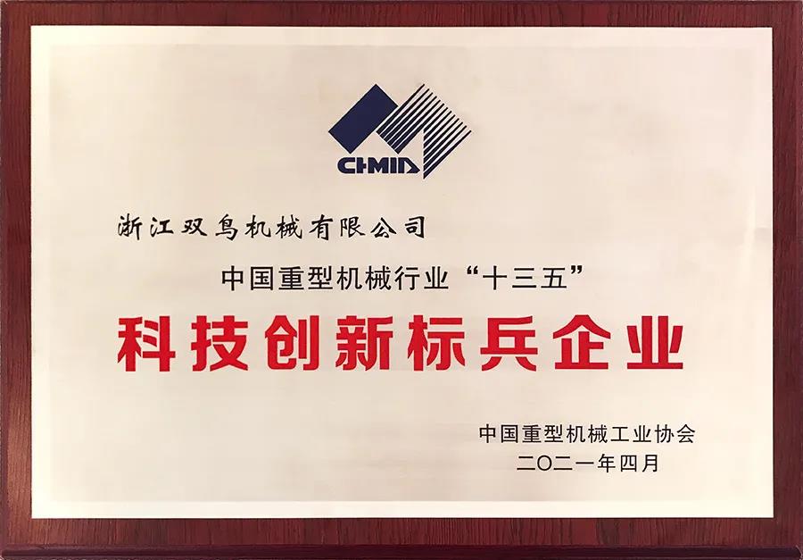 以創新應變 為制造賦能 | 雙鳥機械榮獲“中國重型機械行業'十三五'科技創新標兵企業”